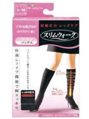 テレビのCMでおなじみの「スリムウォーク」は、ヨーロッパのメディカルの発想から生まれた段階的圧力設計を取り入れ脚のむくみや疲れをサポートしてくれるものです。仕組みは足首とふくらはぎの圧力値の差で、静脈の血液を押し上げ、脚のむくみや疲れをリフレッシュできるのです。脚からヒップまで一日中しっかりサポートしてくれ、しかも、引き締め効果で脚がスッキリ細く見えます。デスクワークや座り通しで脚のむくみが気になる時、立ち仕事で脚の疲れが気になる時におすすめします。